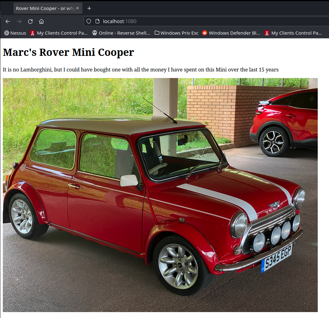 By browsing to http://localhost:1080 we can now start inspecting the site in Burpsuite: